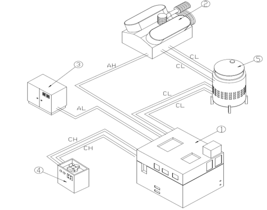 (1) Máquina de moldagem por sopro e estiramento CH: Água fria