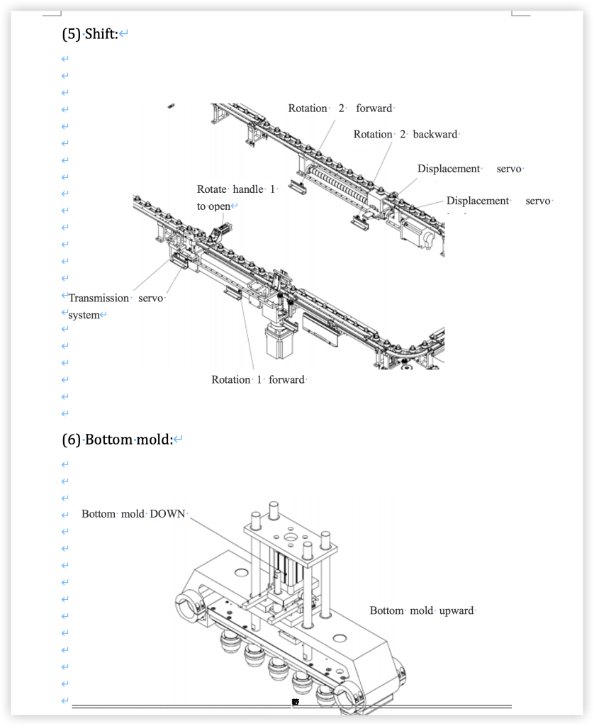 Cuando la máquina de moldeo por soplado y estiramiento o el sistema eléctrico necesiten mantenimiento o reparación, asegúrese de mantener el interruptor de encendido en la posición de apagado. Si hay un dispositivo de llave, bloquéelo para garantizar la seguridad. - Compruebe siempre si hay fugas de agua, especialmente en los componentes eléctricos, y no permita conexiones de agua. Los moldes, hornos de calentamiento, etc., requieren agua. Durante el mantenimiento o la reparación, es necesario verificar si los componentes de conexión tienen fugas de agua. Al desmontar o reemplazar el molde, asegúrese de drenar completamente el agua. 8. Reabastezca o reemplace la máquina de moldeo por soplado para asegurar que se encuentre en estado estacionario.